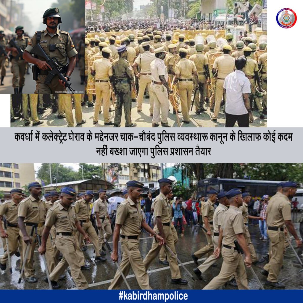 गोंडवाना समाज छत्तीसगढ़ एवं भीम आर्मी भारत एकता मिशन द्वारा अपनी विभिन्न मांगों को लेकर कलेक्ट्रेट कार्यालय कवर्धा का घेराव, आम सभा एवं पुतला दहन कार्यक्रम प्रस्तावित है। संभावित भीड़ और कानून-व्यवस्था की स्थिति को देखते हुए कबीरधाम पुलिस प्रशासन ने व्यापक, संगठित और सख्त सुरक्षा व्यवस्था लागू की है।