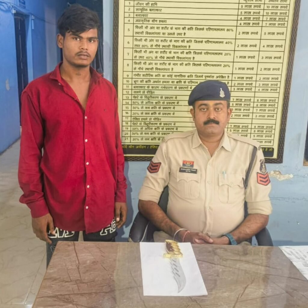 गिरफ्तारी के दौरान पुलिस ने आरोपी के कब्जे से एक धारदार चाकू बरामद किया।
