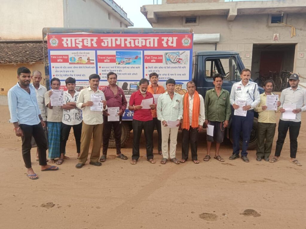 वरिष्ठ पुलिस अधीक्षक श्री रामकृष्ण साहू (IPS) के निर्देशन में साइबर अपराधों की रोकथाम और जन-जागरूकता अभियान लगातार चलाया जा रहा है। इसी क्रम में साइबर जन-जागरूकता रथ के माध्यम से ग्राम मटका, जिया और दहीमाही में ग्रामीणों को साइबर फ्रॉड से बचने की जानकारी दी गई।