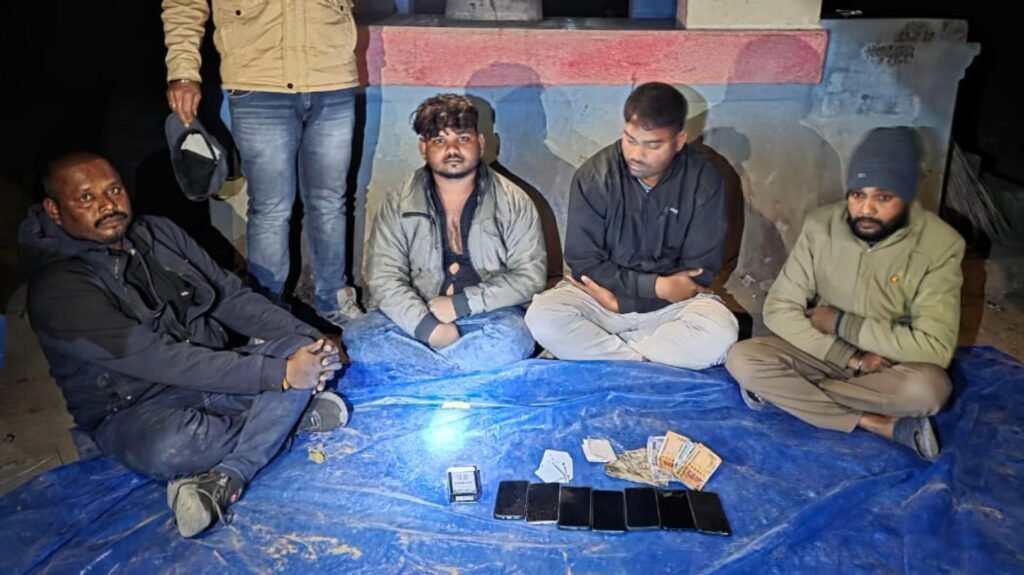 गिधौरी में पुलिस की बड़ी कार्रवाई: सॉल्यूशन सेल की सूचना पर चार जुआरी रंगे हाथों गिरफ्तार