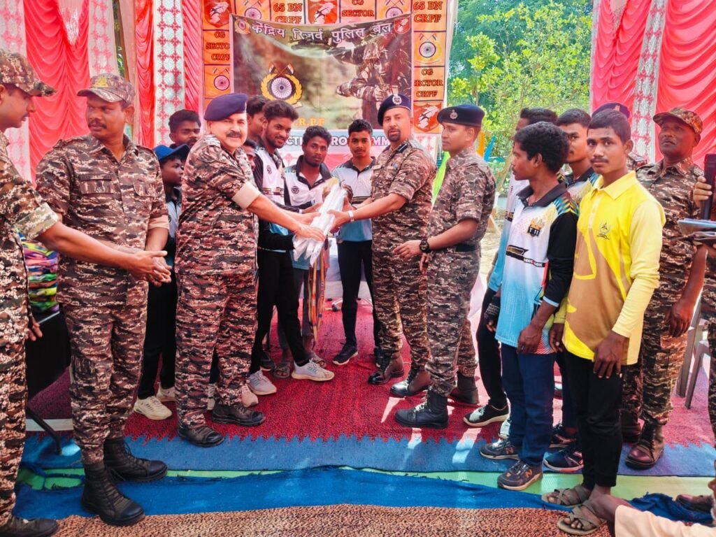 CRPF का बड़ा जनसंपर्क अभियान! बिंद्रानवागढ़ क्षेत्र के गांवों में बांटी सामग्री, युवाओं को खेल किट वितरित