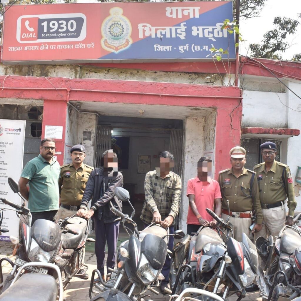 भिलाई भट्ठी में बड़ा खुलासा! 31 लाख के 31 चोरी के वाहन बरामद, तीन आरोपी गिरफ्तार