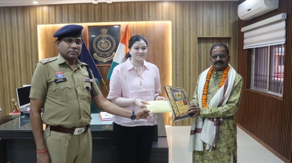 राजनांदगांव पुलिस अधीक्षक कार्यालय में सेवानिवृत्त सहायक उपनिरीक्षक नरेंद्र तिवारी को सम्मानपूर्वक विदाई दी गई। इस अवसर पर पुलिस अधीक्षक Ankita Sharma ने उन्हें शॉल, श्रीफल और स्मृति चिन्ह भेंट कर उनके उज्ज्वल भविष्य की कामना की। समारोह में उनके लंबे, उत्कृष्ट और अनुकरणीय सेवा कार्यों की सराहना की गई।