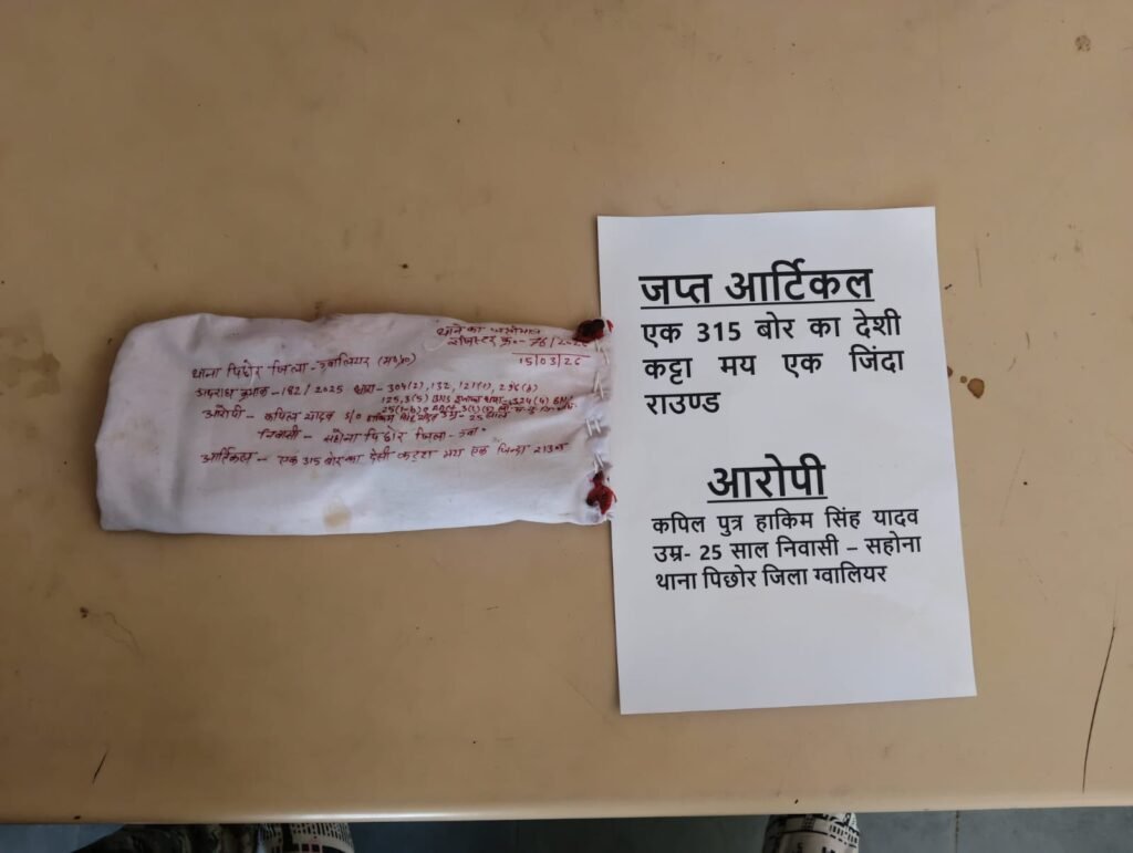पुलिस ने आरोपी के कब्जे से 315 बोर का अवैध देशी कट्टा और एक जिंदा कारतूस बरामद किया है, जिसे घटना में उपयोग किया गया था। आरोपी को गिरफ्तार कर उसके खिलाफ संबंधित धाराओं में आगे की कानूनी कार्रवाई की जा रही है।