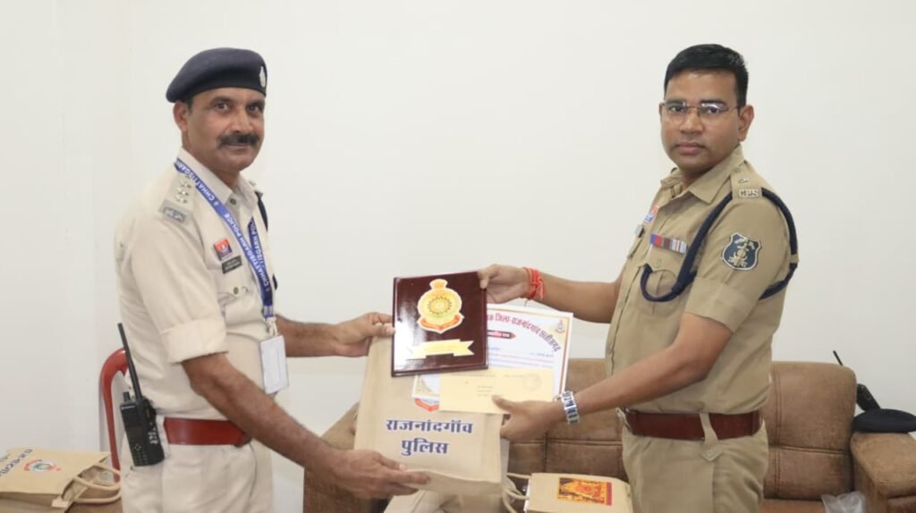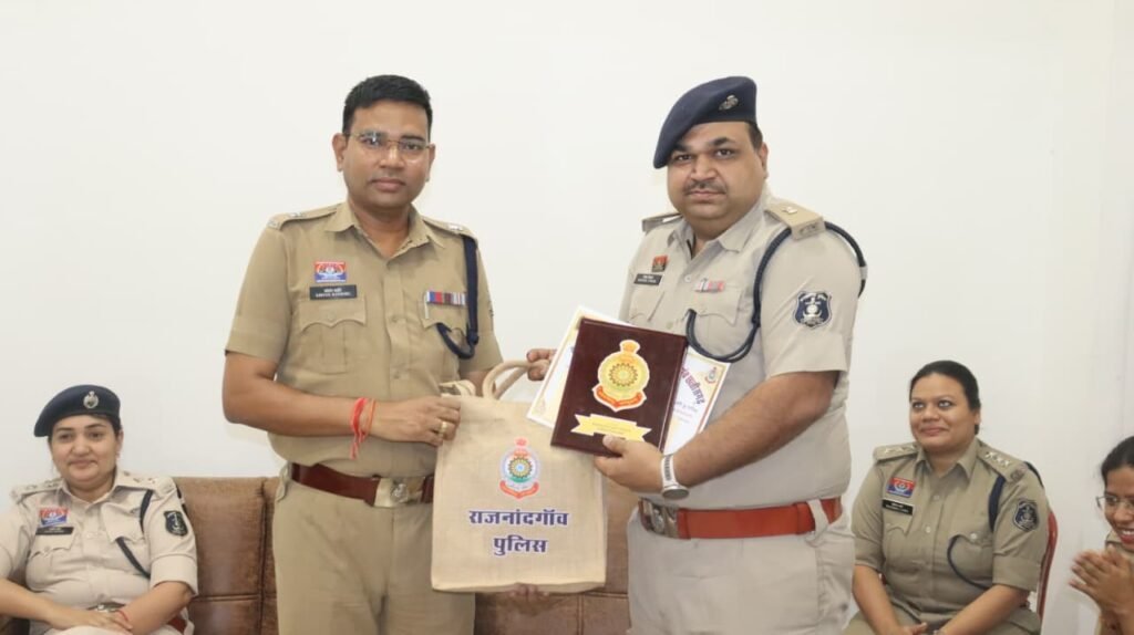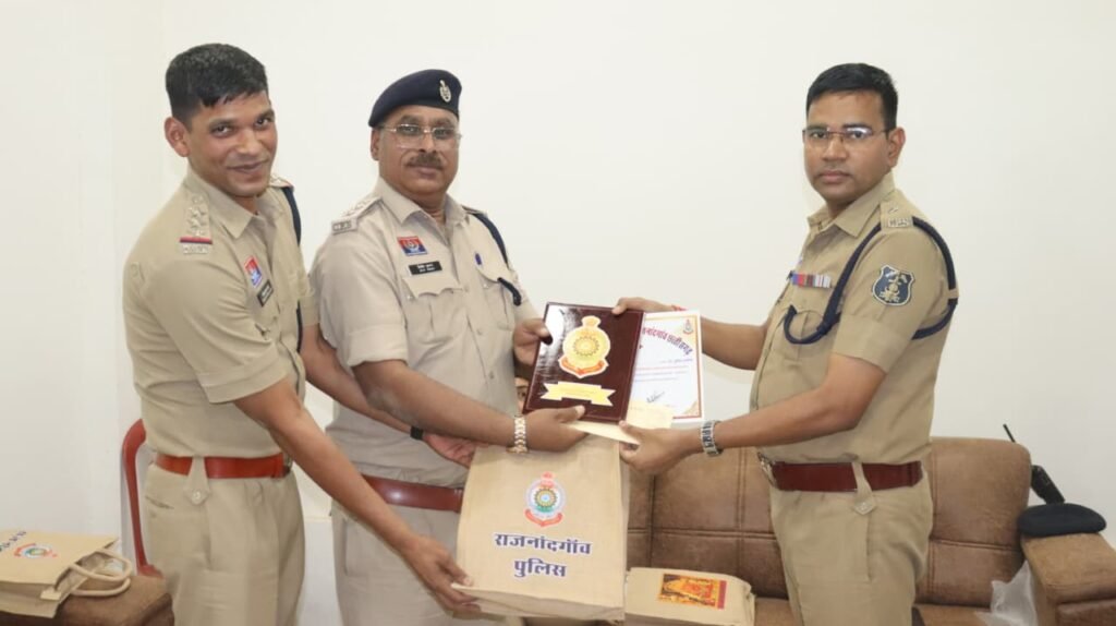 राजनांदगांव पुलिस द्वारा कर्तव्यनिष्ठा और उत्कृष्ट ड्यूटी के लिए अधिकारियों एवं कर्मचारियों को सम्मानित करने की सराहनीय पहल की गई। इस दौरान सभी राजपत्रित अधिकारियों (GOs) को माँ बम्लेश्वरी देवी का प्रसाद पैकेट, प्रशंसा प्रमाण पत्र, डी.ओ. पत्र और स्मृति-चिन्ह प्रदान किए गए।