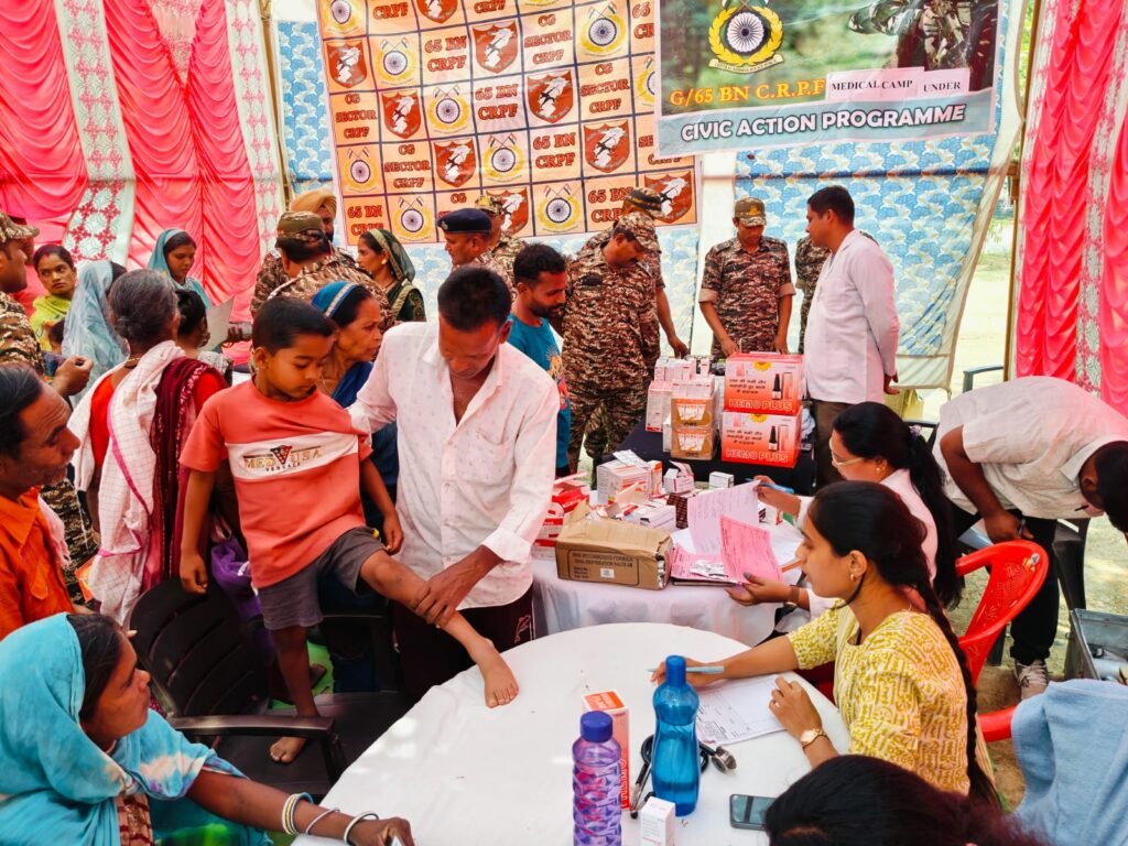 CRPF का सिविक एक्शन: गरियाबंद में ग्रामीणों को मिला इलाज, बच्चों को पढ़ाई सामग्री और महिलाओं को सिलाई मशीन