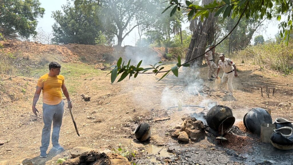 “ऑपरेशन आघात” में रायगढ़ पुलिस की बड़ी कार्रवाई — 190 लीटर महुआ शराब जब्त, 8 भट्ठियां नष्ट