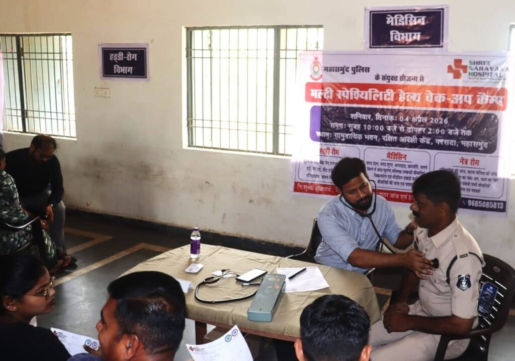 महासमुंद जिले में पुलिस जवानों एवं उनके परिवार के सदस्यों के स्वास्थ्य को ध्यान में रखते हुए एक निःशुल्क स्वास्थ्य शिविर का आयोजन किया गया। इस शिविर का उद्देश्य पुलिस परिवार को बेहतर स्वास्थ्य सुविधाएं उपलब्ध कराना और समय पर जांच के माध्यम से बीमारियों की पहचान करना रहा।