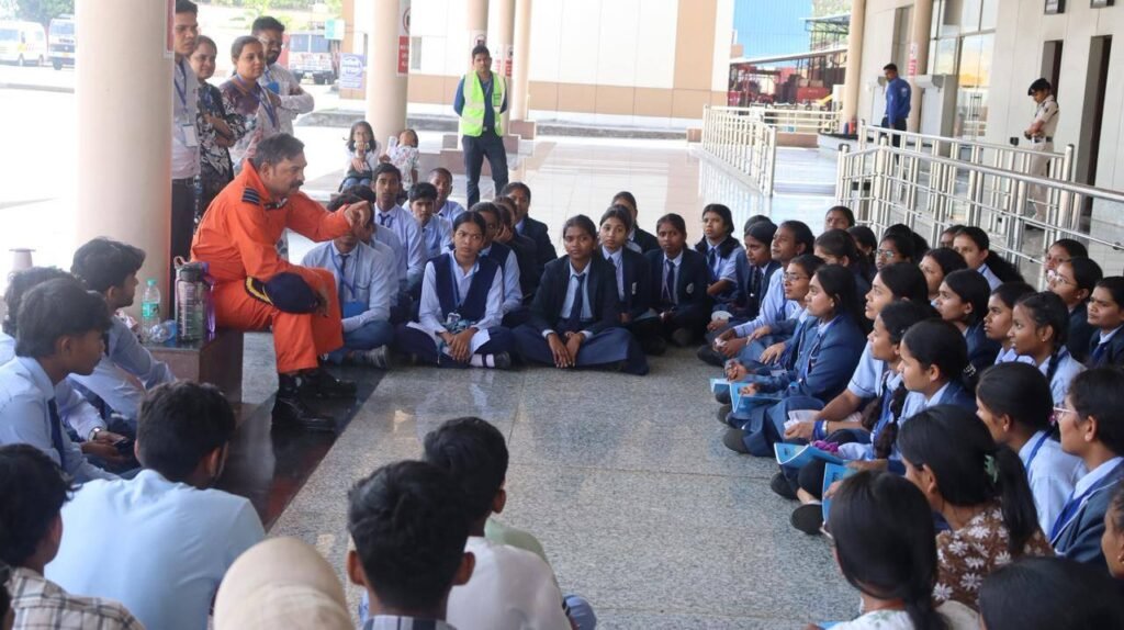 एयरफोर्स विंग कमांडर विवेक कुमार साहू एवं उनकी टीम—जूनियर वारंट ऑफिसर पी.सी. सामल, CPL संदीप यादव, सुमित नेगी और अर्जुन यादव—साथ ही एयरपोर्ट डायरेक्टर व्ही.के. गुप्ता एवं प्रबंधन टीम द्वारा बच्चों को समूहों में विभाजित कर विस्तृत जानकारी प्रदान की गई।